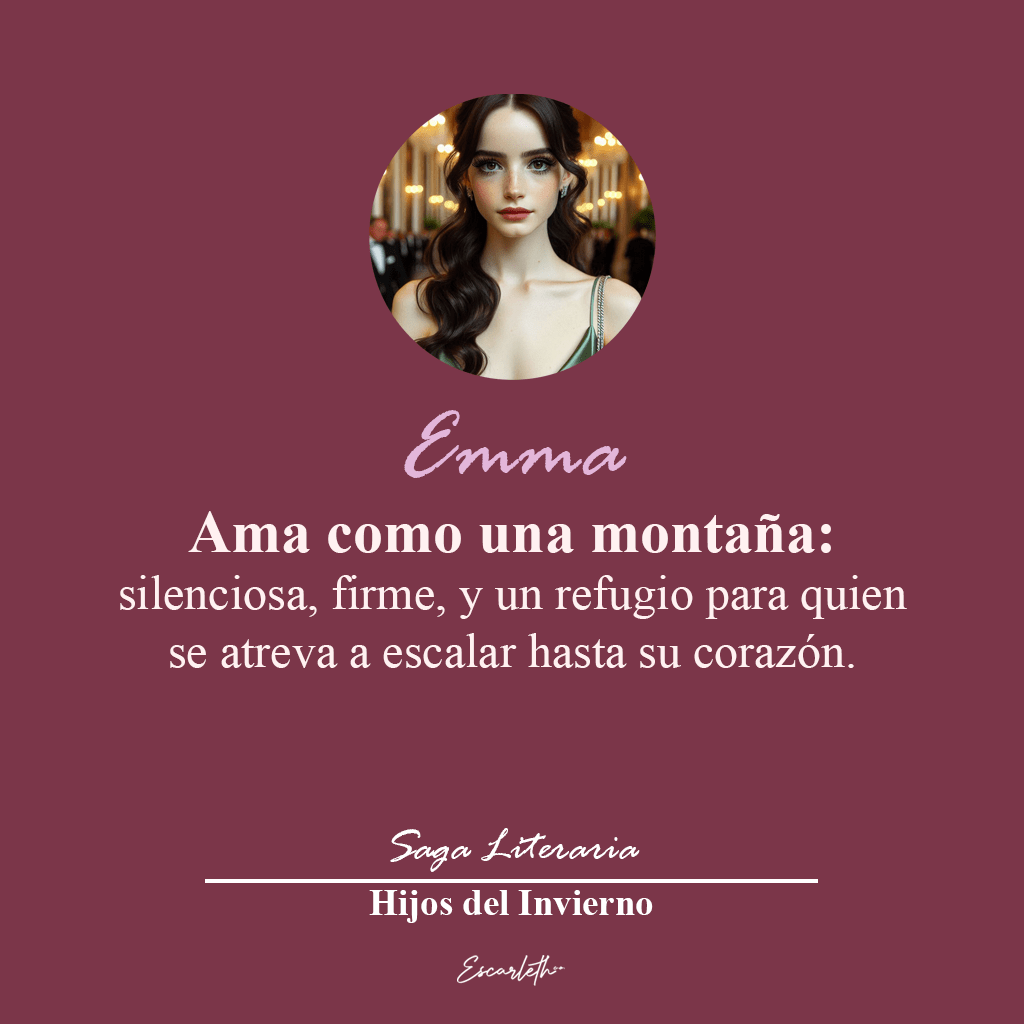 A pesar de ser reservada al principio, Emma se convierte en una compañera profundamente empática, siempre buscando el bienestar de los demás. Le cuesta poner sus necesidades por encima de las de quienes ama, lo que la convierte en una persona generosa, pero también vulnerable. Ama con una dedicación tranquila, donde cada gesto es un reflejo de su capacidad para crear conexiones genuinas.