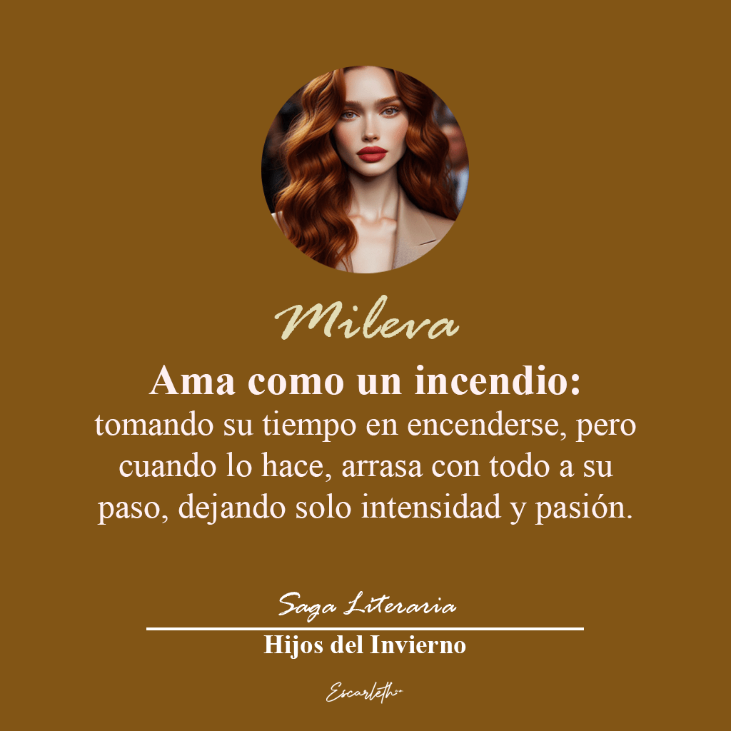 Cuando Mileva se permite amar, lo hace con una pasión que lo abarca todo. Su amor es arrollador y lleno de deseo, y aunque le cuesta dejarse llevar, una vez que lo hace, no hay vuelta atrás. Aun así, su naturaleza reservada la mantiene en una lucha constante entre su deseo de vivir plenamente el amor y su necesidad de protegerse del dolor.